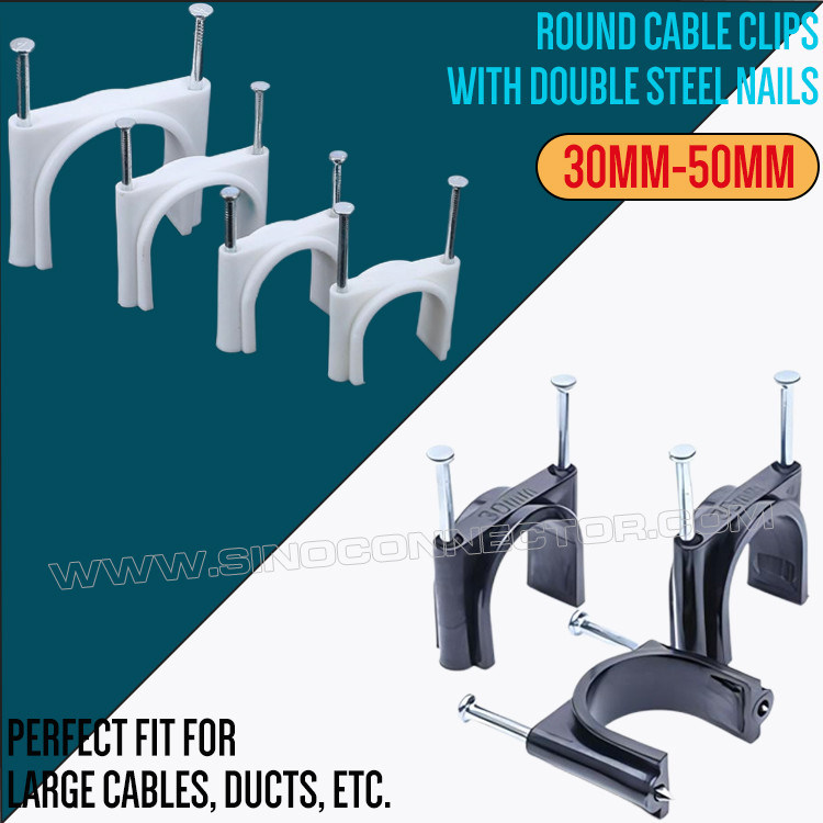 | Product name: | Ø2.5mm~25mm Plastic Cable Clips c/w Single Nail and Ø30mm~50mm Round Cable Clips c/w Double Nails for Cable Management |