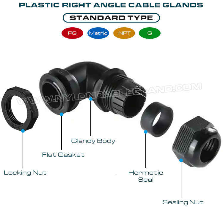 | Product name: | 90° Elbow Hermetic Cable Glands, IP68 Waterproof Right Angled Electrical Cable Glands with PG & Metric Threads |