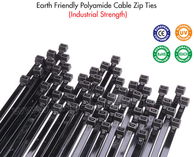 They are designed to secure wire bundles and harness components quickly without slipping. Featuring a self-locking head, most cable ties are designed to handle temperatures from 40°F (-40 °C) to 185 °F (85 °C). Zip ties are available in several lengths, widths and strengths. Made in UL-approved polyamide 66 (nylon 66), flammability 94V-2, it has the features of acid resistance, corrosion resistance and good insulation and not easy to age and has a strong bearing capacity. Such Cable ties are widely used in Christmas gift factories, electronics factories, wire processing factories, wire and cable factories, toy factories, festive festivals, stationery department stores, fresh supermarkets, residential daily use, electrical appliances, connectors, agriculture, gardening, lighting, handicrafts, etc. industries.