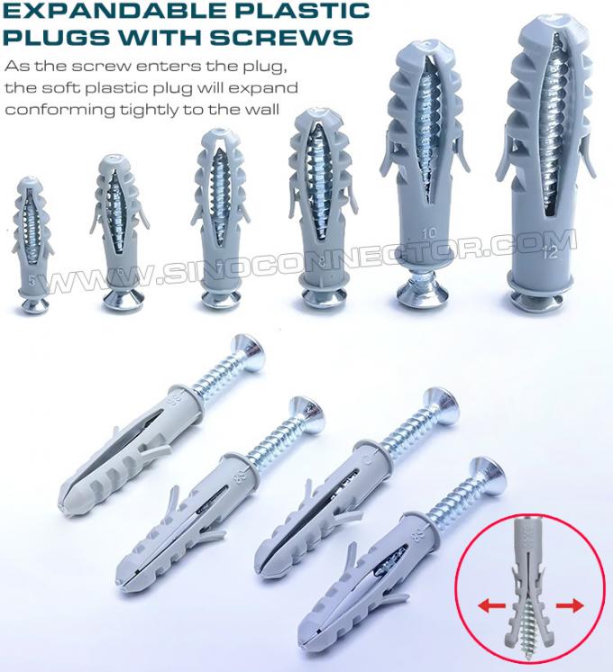 (5) Product Performance: These expandable plastic plugs are widely used and has good performance, weather resistance, it means that it will not be easily aged or damaged when used outdoors, and it can maintain good performance for a long time. The self-tapping screws are rustless and easy to install, convenient in color matching and good in insulation, which make them provide reliable fastening solutions in various environments.